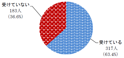メインテナンスを受けていない人と回答した人は183人(36.6%)でした。その理由には、異常や違和感が無いが63人(34.4%)、歯科医師から指示が無かったからが50人(27.3%)と多くみられました。